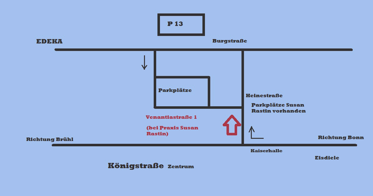 Die Praxis liegt im Herzen von Bornheim in der Nähe der Eisdiele und Kaiserhalle.